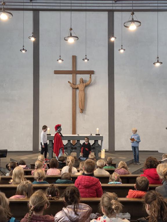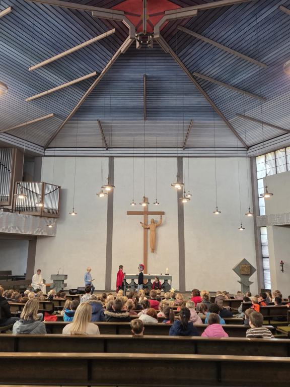 Im Schulgottesdienst, der von den Kindern des 3. Jahrgangs vorbereitet wurde, konnten wir die Geschichte und Bedeutung des Martinsfests noch näher kennenlernen und erfahren.